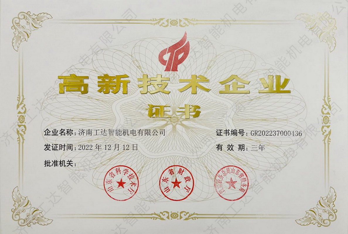 高新技術企業(yè)認證彰顯創(chuàng)新實力丨濟南工達智能機電有限公司榮獲高新技術企業(yè)...